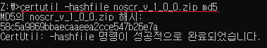 ※ 배포된 파일과 본인 PC로 다운로드 한 파일이 정상적인 것인지 확인하고자 하신다면,